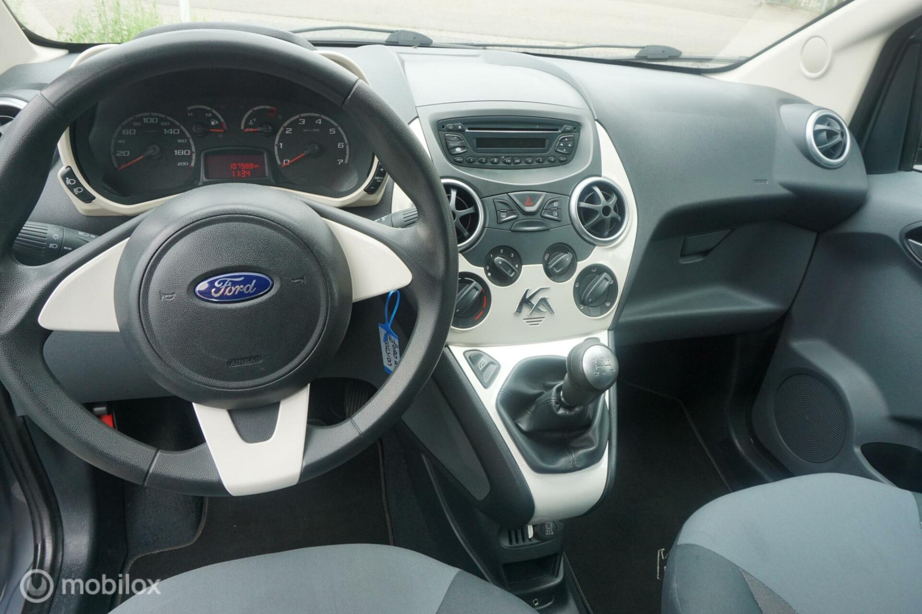 Het is een nette en comfortabele auto, deze Ford Ka, hij heeft 107890 kilometer gelopen. Met zijn benzinemotor en handgeschakelde versnellingsbak is dit een prima auto voor nog vele kilometers. Met één druk op de knop blaast de airconditioning een koele bries door het interieur. Ook centrale deurvergrendeling met afstandsbediening, boordcomputer en verstelbaar stuur zijn aan boord.